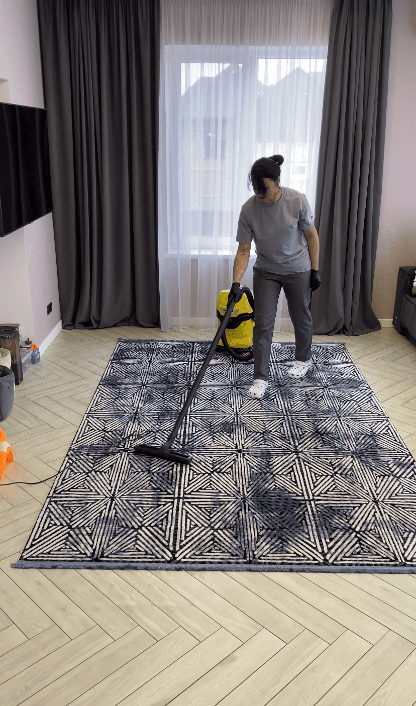 - Сухе прибирання підлог у всіх кімнатах за допомогою пилососа, включно з килимами та килимовими покриттями. Це дає змогу очистити підлогу від пилу та сміття.